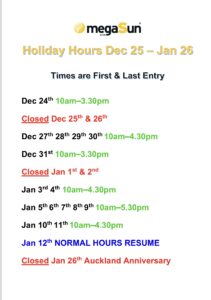 We DO NOT do any form of spray tanning. megaSun NZ is NOT responsible for any external sites that claim that we offer this service.